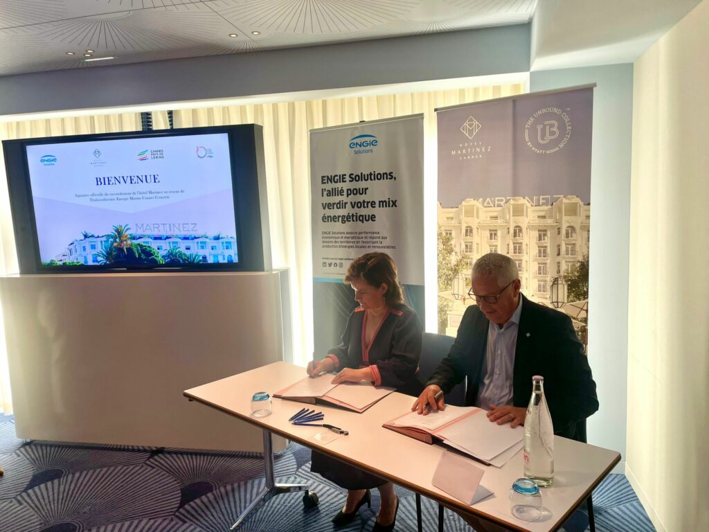 Communiqué de presse 29 JUILLET – ENGIE SOLUTIONS Cannes, le 29 juillet 2025 – Michel Cottray, directeur général de l’Hôtel Martinez, et Emmanuelle Brisemur, directrice du territoire Sud-Est d’ENGIE Solutions, ont officialisé la signature du raccordement de l’Hôtel Martinez de Cannes au réseau Énergie Marine Cannes Croisette (EMCC) fonctionnant grâce à la thalassothermie. Cette initiative…
