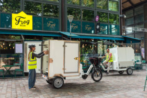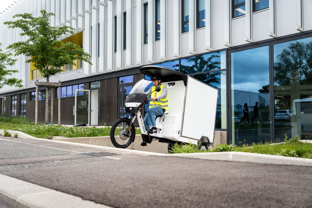 Nos gammes élargies changent la donne : elles peuvent transporter jusqu’à 300 kilos de charge utile et 2 m³ de volume, tout en offrant la capacité de gravir des pentes jusqu’à 18 %. Grâce à une batterie amovible, qui évite les arrêts en journée pour la recharge, l’autonomie atteint jusqu’à 80 km. Sachant que les acteurs de la cyclologistique parcourent en moyenne 35 km par jour, un vélo peut donc être utilisé sur un double poste. Nos modèles sont aussi disponibles en version plateau ou benne basculante, avec nettoyeur haute pression, pour assurer l’entretien des espaces verts ou la propreté urbaine. Une version dotée d’un caisson réfrigéré – avec froid positif ou négatif, certifié Cemafroid – permet d’assurer la livraison alimentaire.
